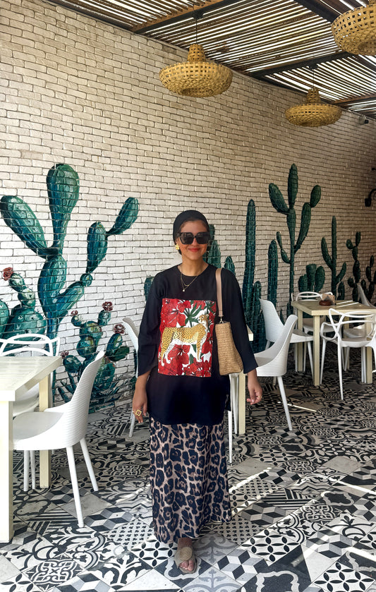 Black oversized leopard tshirt with long sleeves